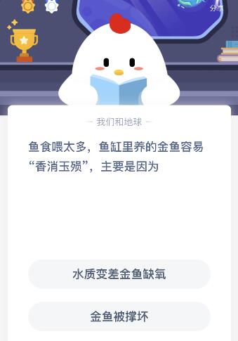 解析:鱼死亡不是撑死,而是剩饭腐烂变质造成缺氧。