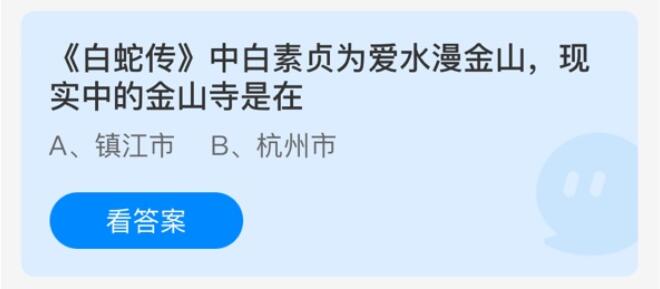 问题1:《白蛇传》中白素贞为爱水漫金山,现实中的金山寺是在?