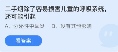 问题2:二手烟除了容易损害儿童的呼吸系统,还可能引起?