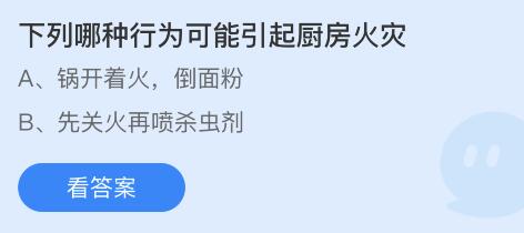 问题1:下列哪种行为可能引起厨房火灾?