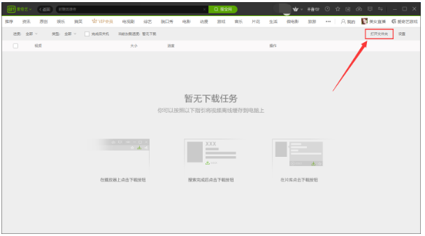 2、在下载界面的右上方位置找到“打开文件夹”,接着找到想要播放的视频点击打开就可以在爱奇艺上播放了;