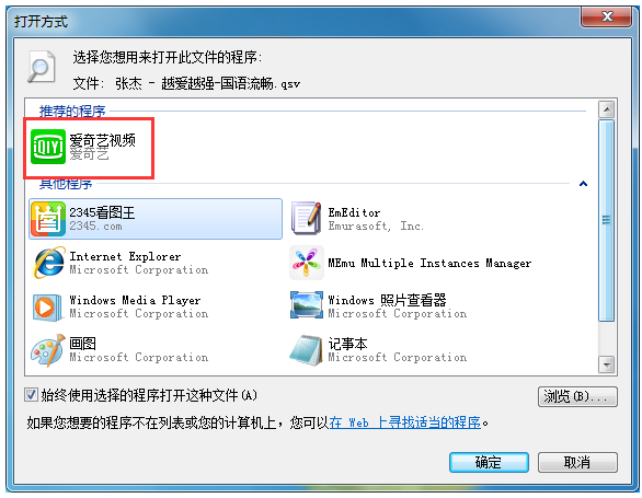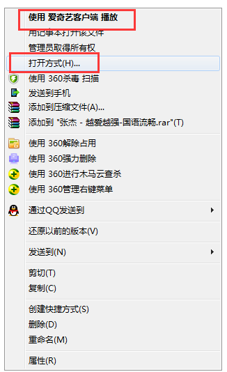 2、如果没有找到该选项也可以在“打开方式”中选择爱奇艺就可以了。