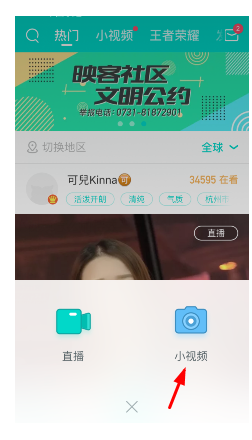 2、点击小视频,开始在映客上拍小视频;