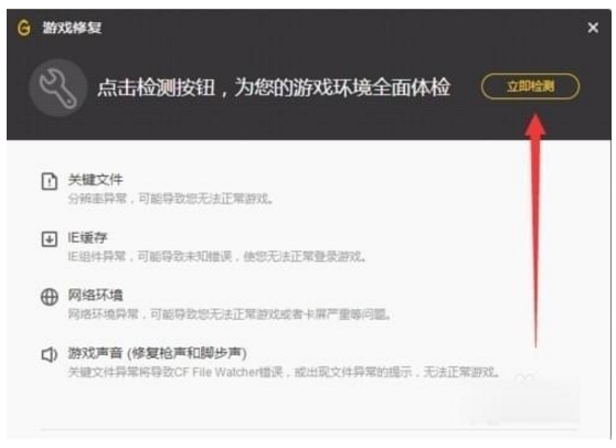 2、选择“游戏修复”然后在弹出来的修复界面选择“立即检测”。