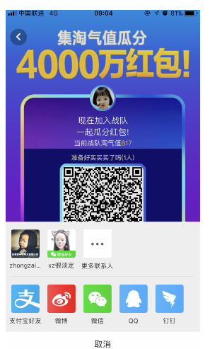 3、分享出去后,就等着好友加入你的双11战队吧!