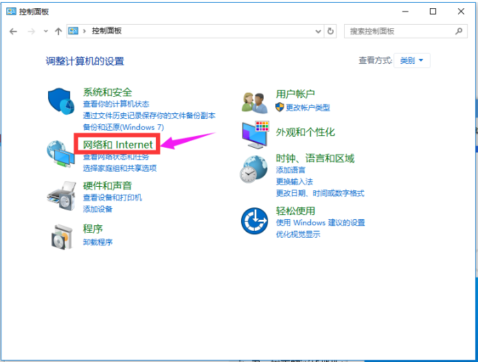 2、选择“网络和Internet”,