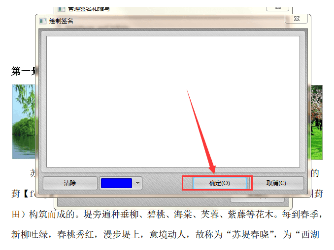 4、在绘制签名界面当中,绘制需要添加的签名,然后点击“确定”按钮,即可将绘制的签名添加到PDF文件当中。