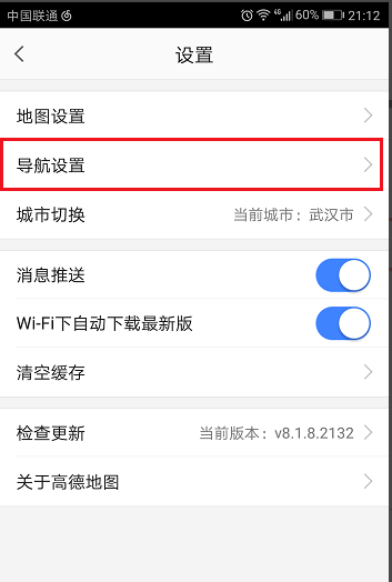 3、进入设置界面之后,点击导航设置,如下图所示: