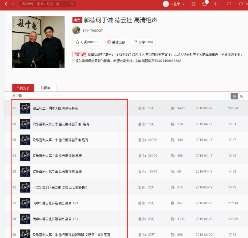 2、如图,我们可以选择自己喜欢的相声电台,小编选择的是德云社。