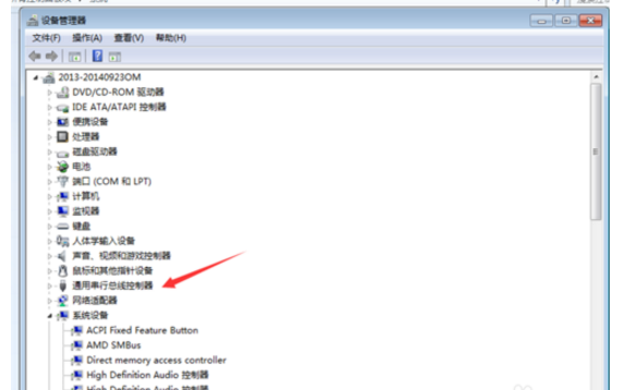 这里是我们查看各项内容是否完整的地方,我们打开通用串行总线控制器,双击打开子菜单。