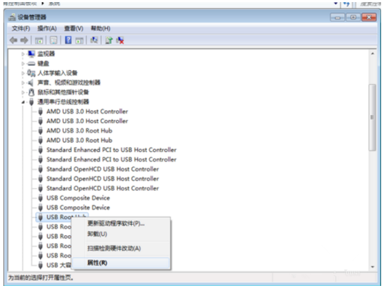 找到一个叫做USB Root Hub的选项内容,然后右键单击该位置。