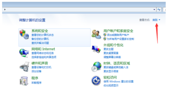 在桌面上,点击左下角的菜单按钮,进入到我们的控制面板当中,如果是类别的排序方法,我们就点击一下,调节成小图标。