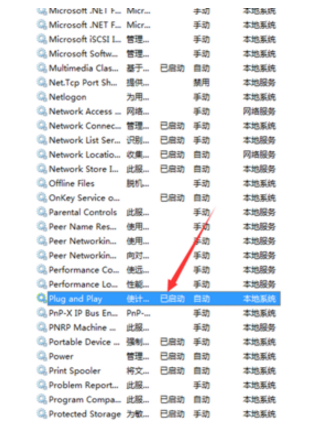 这里是按照首字母排序的,我们找到Plug and Play选项,如果后面标记这着已启动,那证明我们的U盘没有反应与这个内容是无关的,如果没有启动标志,那么证明我们的问题就出在这里了。