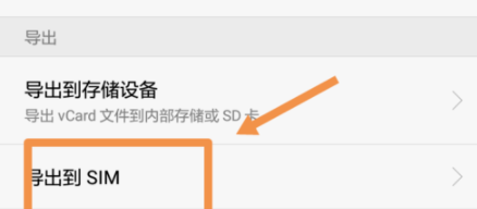 3.如果你的手机联系人都在储存卡里,点击导出到SIM这一项。