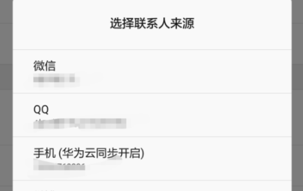 4.然后选择联系人来源,你可以从微信、QQ、手机等这几项途径中选择联系人,比如选择了微信。