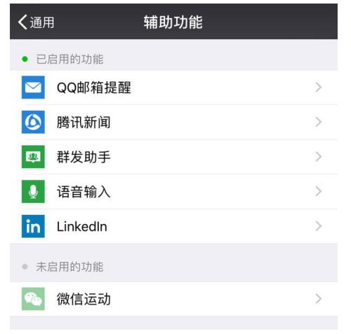 第一个,打开微信设置,在通用里找到“辅助功能”,根据我们的需要,关闭不常用到的功能。