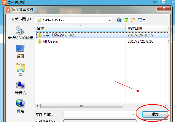 3、弹出文件管理器选项卡,单击“添加共享”,