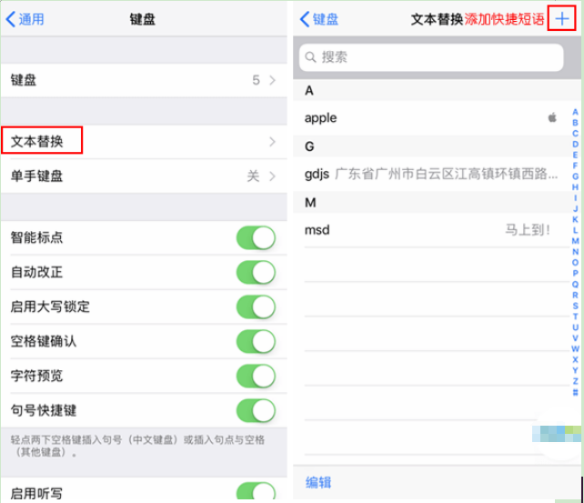 iPhone的文本替换(用户词典)就是一个可以帮你输入一些快捷短语的功能,在「设置」-「通用」-「键盘」-「文本替换」里打开这个功能。