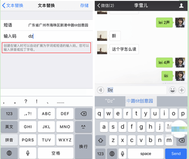 设置一个输入码(拼音或拉丁字母),以及对应的短语。如输入「dz」,就会出现公司的地址。