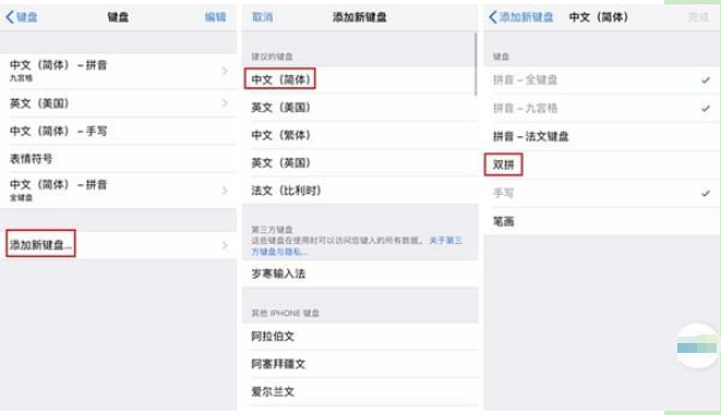 iPhone在iOS11中添加了「双拼」输入法。在「设置」-「通用」-「键盘」-「添加新键盘」-「中文(简体/繁体)」-「双拼」里即可以添加双拼输入法。