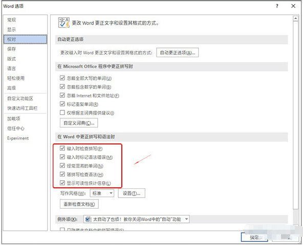 取消这些复选框即可关闭自动校对