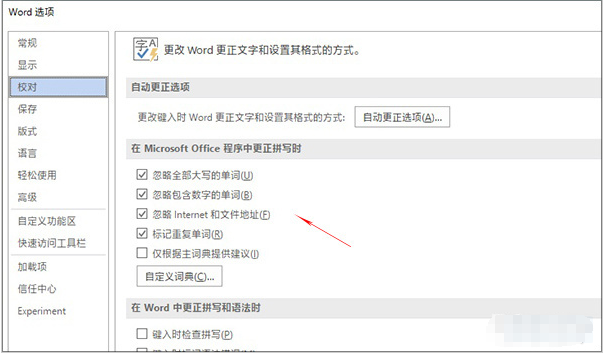 单词更正与语法校对有点相像,初衷也是为了减少用户在文档输入时可能出现的错误。但如果你的文章包含了很多专业术语或者英文缩写,那么基本上可以让Word蒙圈了。和自动标错一样,我们也可以通过关闭自动更正解决这一问题,位置就在“Word选项”→“校对”→“在MicrosoftOffice程度中更正拼写时”。