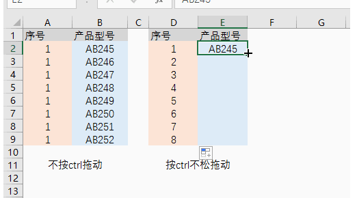 复制数字时,按Ctrl不松可以让数字递增