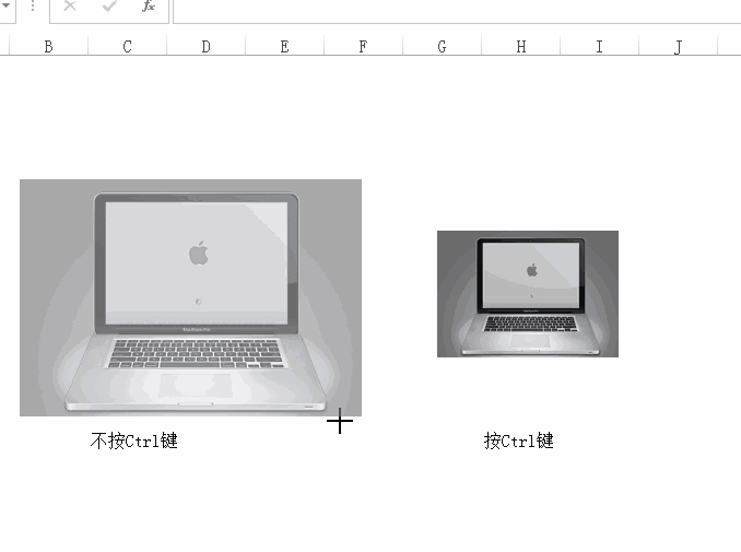 调整图片大小如果直接拖拉,无法在原地缩小或放大图形,而按Ctrl则可以。