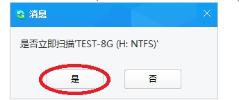 弹出对话框,提示“是否扫描TEST-8G(H:NTFS)”,点“是”,软件扫描H分区数据。