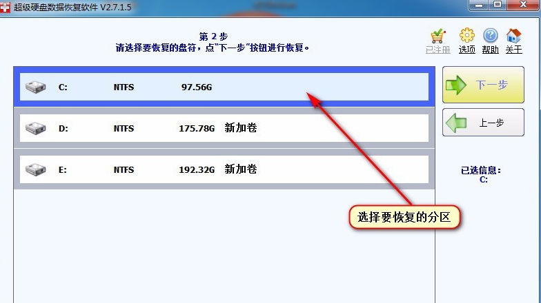 选择我的分区C盘(根据自己电脑的情况,可以是其它的优盘,SD卡,移动硬盘等),再点下一步。