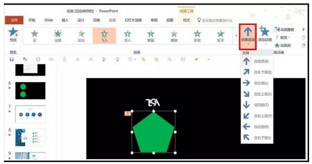 在这里,我们可以对文本或者形状进行更高级的动画设置,只需要在动画窗格中点击【效果选项】即可。