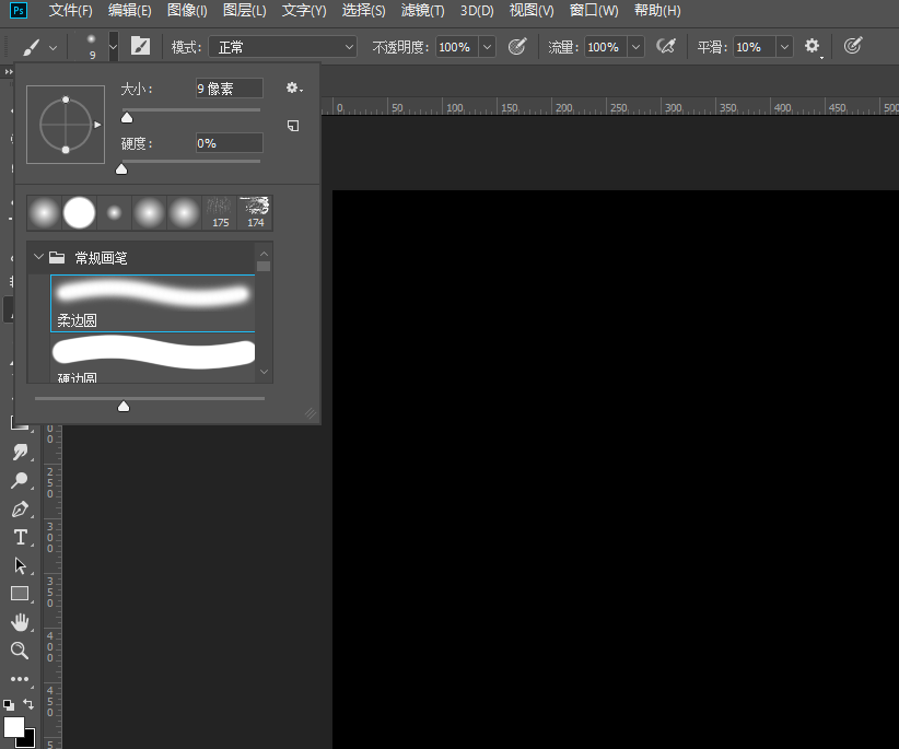 新建图层,打开柔边圆的画笔在画布中心画一个小圆,