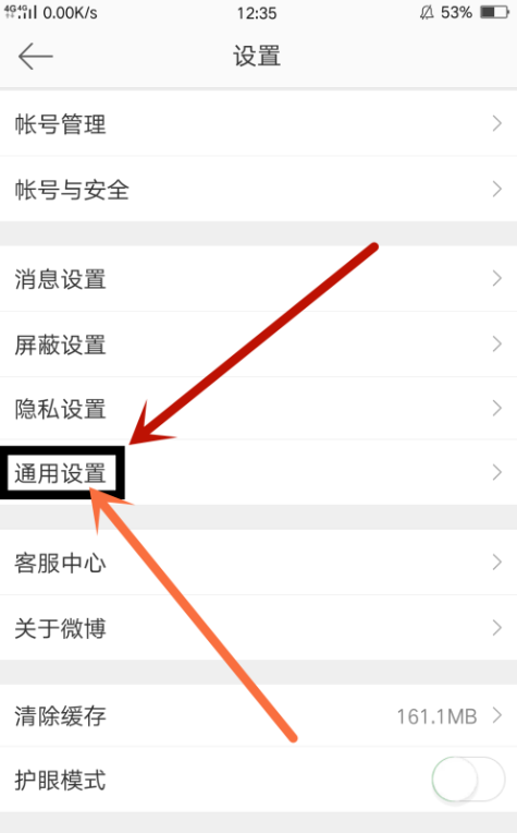 进入微博设置页面,继续点击打开“通用设置”,如图所示,