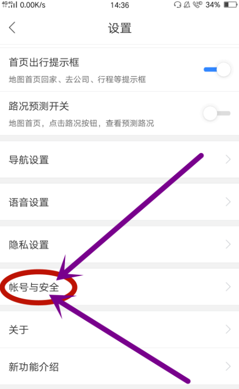 接着在百度地图设置功能中,在页面底端打开账号与安全设置,如图所示,