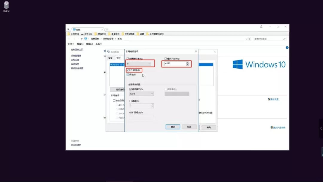 在引导选项里将“最大处理器个数”修改为最大,比如我的是8个就改为8,而最大内存则改为你电脑内存的4分之1,比如我的是16G,就改成4096,(1G是1024,几个G就乘以1024就行),最后点击一下PCI锁定就可以了,这样是让CPU运行得更快。