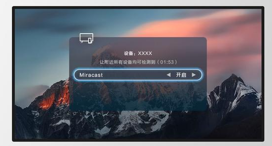 2)将Miracast设置为“开启”。此时超级电视进入2分钟倒计时,以便附近设备检测到。