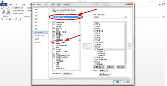 在“不在功能区命令”,下拉菜单即可找到“朗读”选项,接下来我们将它添加到功能区。