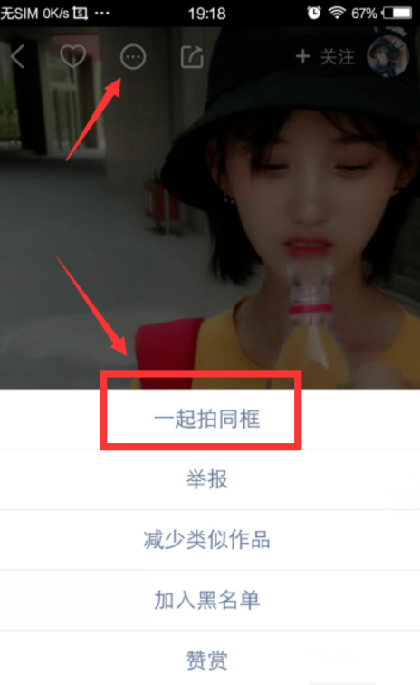 打开快手APP,点击选择一条自己喜欢的视频,点击视频上方的圆点图标,就能发现“一起拍同框”功能,这里的同框就是指合拍。