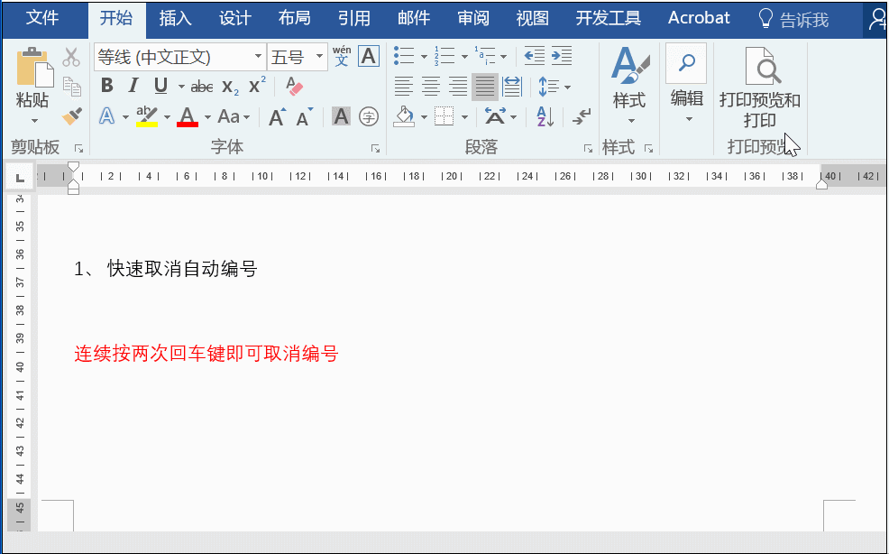 1、快速取消自动编号
