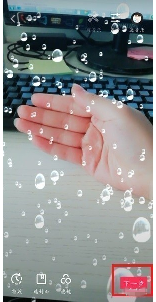 5、拍完后点击【选音乐】,配上喜欢的音乐,左下角选好特效、滤镜和封面。
