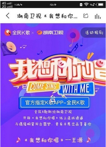 湖南卫视播出的《我想和你唱》节目很受音乐爱好者的喜欢,大家可以通过全民K歌与喜欢的明星一起合唱,从而有机会去到现场和明星互动!
