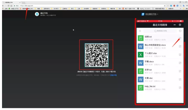 想要将文件互传的话,就记得登录doc.qq.com,在手机上用最近文档小程序将文件点击发送到电脑,就会出现一个扫码框。