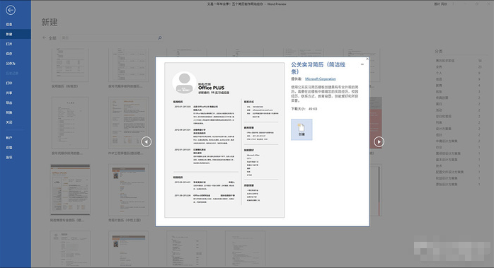 直接在Word 2016新建模板页搜索“简历”