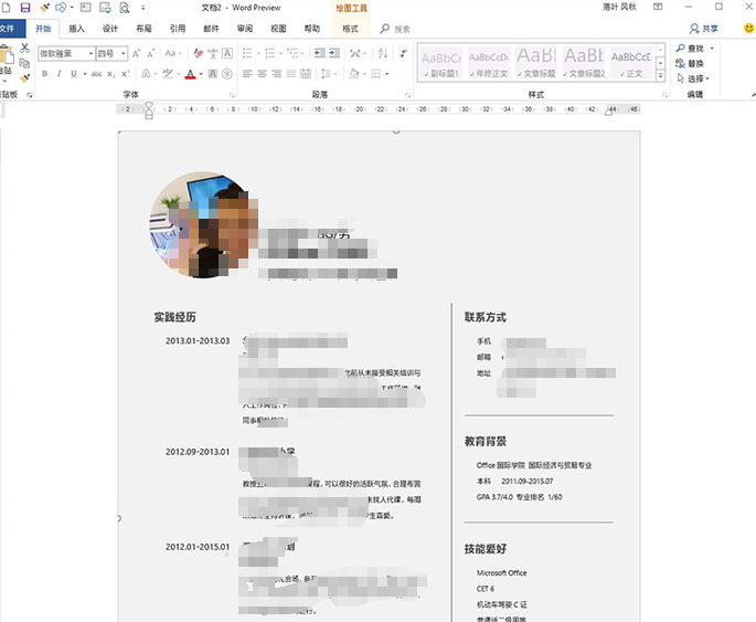 如果你倾向于制作纸质简历,或者比较喜欢那种传统的中规中矩式的求职简历,那么微软Office自带的模板就能轻松满足你的要求。以常见的Office 2016为例,启动Word2016,在新建模板页中搜索“简历”,稍等片刻后,下方结果页就会出现十几组形态各异的简历模板。挑选一个喜欢的点击一下,然后再点击右窗格中的“创建”按钮,几秒钟后一份漂亮的简历就出现在你的面前了。