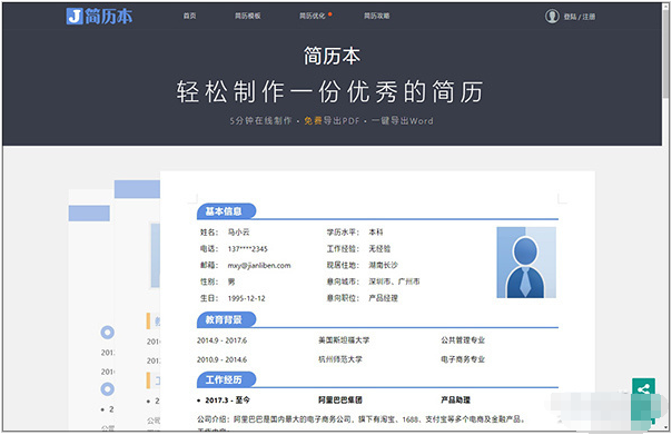 “简历本”是一个很实用的在线简历编辑网站