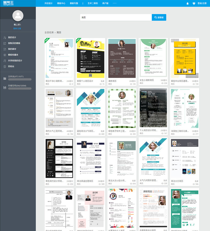 五百丁的简历都很有设计感,唯一的缺点就是不支持免费导出