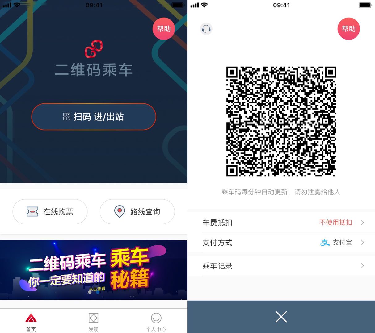 乘客进入闸机前,在首页点击「扫码进出站」按钮,手机显示出二维码后对准闸机上的扫描区,即可进出站。