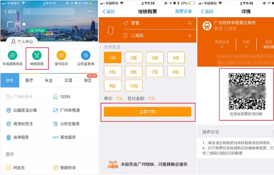 你也还可以使用支付宝进行预购,打开城市服务-地铁购票,选择起始车展及购票数量,付款成功后及获得票二维码,可到站台的云购票机取票。