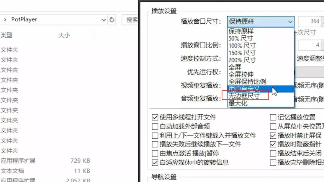 设置路径为-播放→播放设置,尺寸改为无边框尺寸再点应用就行了。