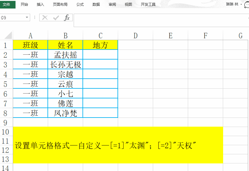 快速录入不规则重复数据可以这样做(类似下拉列表)。点击设置单元格格式—自定义—[=1]\"太渊\";[=2]\"天权\"。